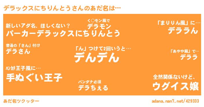 ↓あだ名「デラックスにちりんとう」にコメントする!