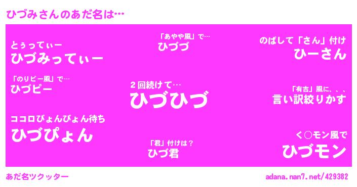 | ヒーロー風カッコイイあだ名 | 『天空の使者ひづみ』『魔戒騎士ヒヅ』『スーパーヒヅミ』 |