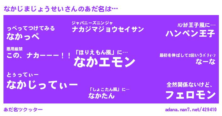 | 欧米人風あだ名 | 『アンジェラ・なかじまじょうせい』『マイケルなかじまじょうせい』 |