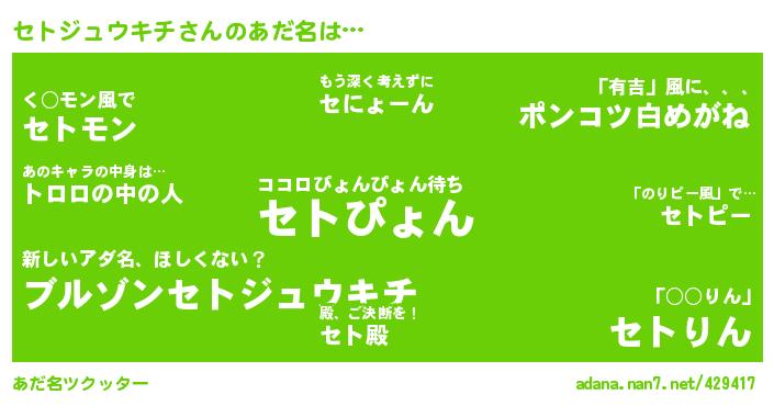 セトジュウキチさんのあだ名を作成しました!