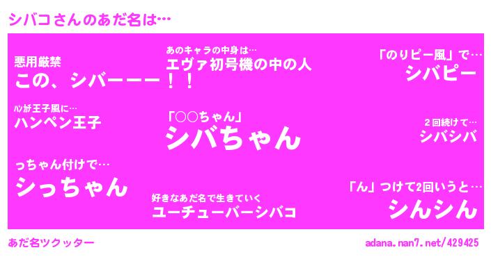 | ヒーロー風カッコイイあだ名 | 『スーパーシバコ』『仮面シバダー』『ネオシバコ』 |