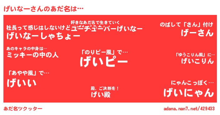 げいなーさんのあだ名を作成しました!