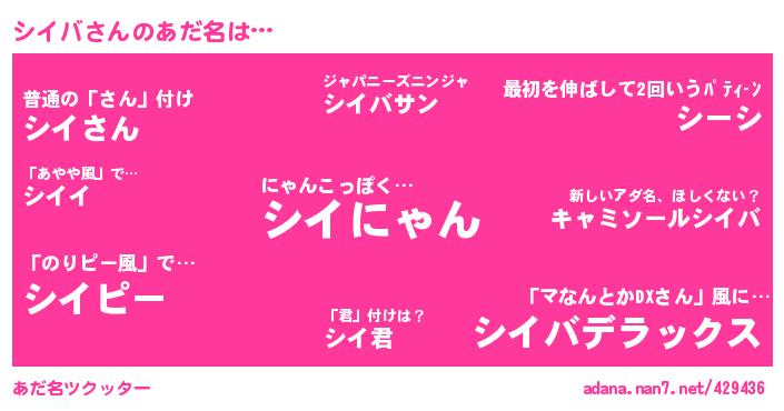| ヒーロー風カッコイイあだ名 | 『ウルトラシイバマン』『魔戒騎士シイ』『仮面シイダー』 |
