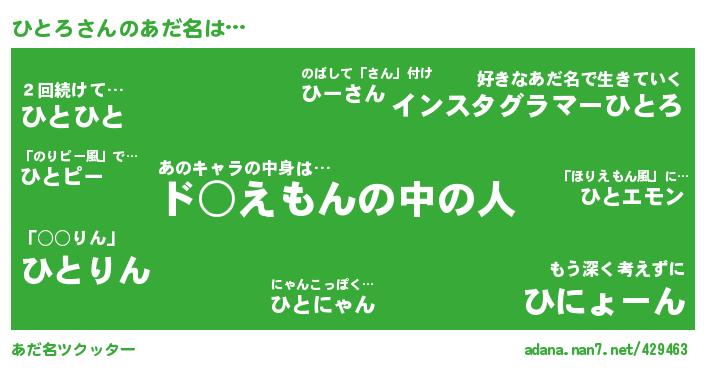 | 男性向けラノベタイトル風あだ名 | 『ノーゲーム・ノーヒトロ』『魔弾の王とひとろ』『ひとろの憂鬱』 |
