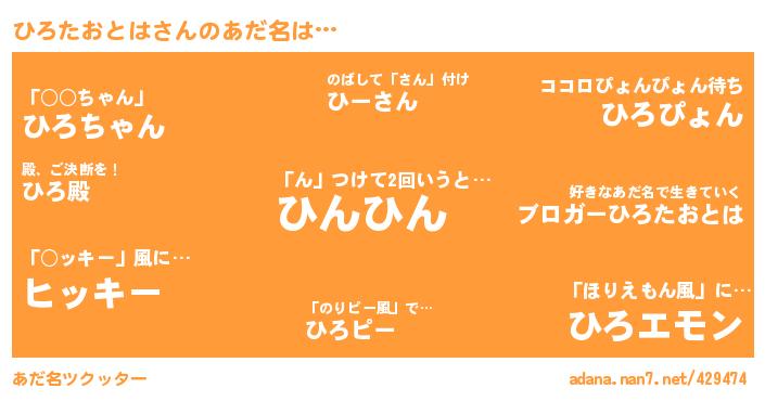 | 男性向けラノベタイトル風あだ名 | 『うちのひろたおとはが世界を掌握している!』『ひろたおとはの憂鬱』 |