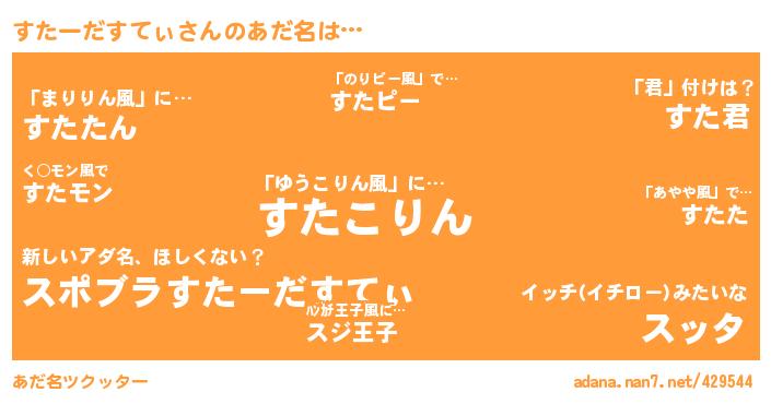 | ポケモン風あだ名 | 『ゼニスタ』『スターダネ』『スータイ』『メロスッタ』 |