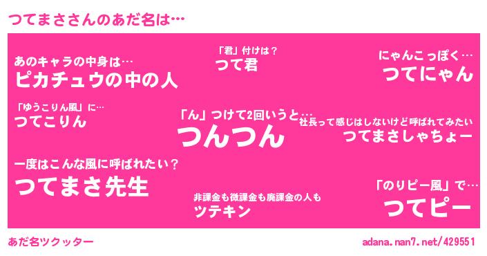 | ヘコむあだ名 | 『つてふぇ~』『豆乳』『つてぷりん』『つてまさ(小並感)』 |