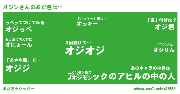 | ポケモン風あだ名 | 『ヒオジン』『オックウザ』『オジセウス』『ゼニオジ』 |