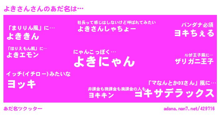 | 意味不明あだ名 | 『自称よきさん』『とにかく怪しいよきさん』『永久保存よきさん』 |