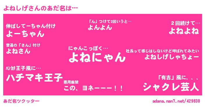 | ヘコむあだ名 | 『よねふぇ~』『豆乳』『よねぷりん』『よねしげ(小並感)』 |