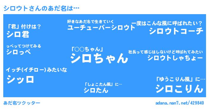 | ポケモン風あだ名 | 『シロキング』『シロゴンZ』『シロウダネ』『シーロイ』 |