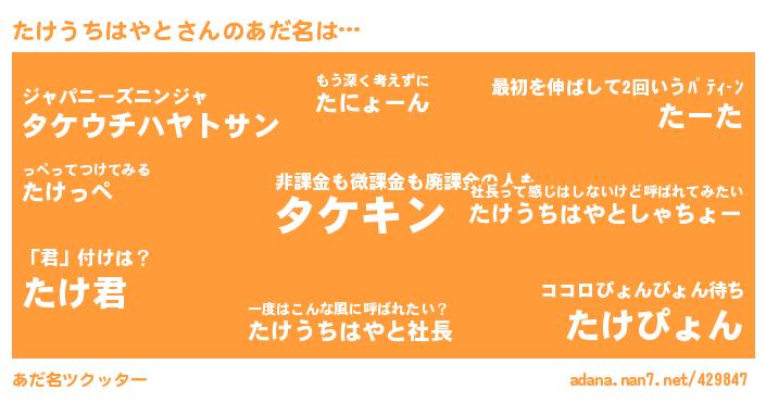 たけうちはやとさんのあだ名を作成しました!