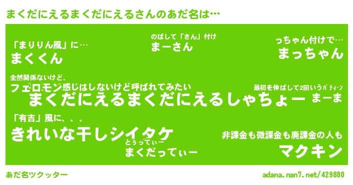 まくだにえるまくだにえるさんのあだ名を作成しました!