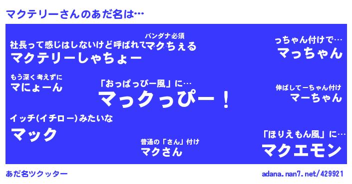 マクテリーさんのあだ名を作成しました!