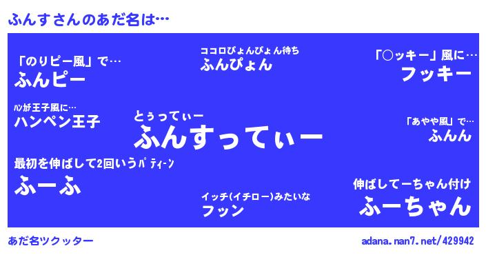 | ポケモン風あだ名 | 『フンスダネ』『フンセウス』『フックウザ』『フンチュウ』 |