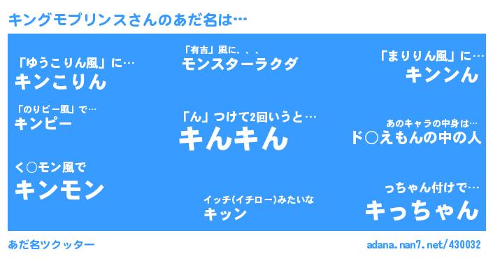 キングモプリンスさんのあだ名を作成しました!