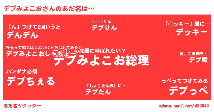 デブみよこおさんのあだ名を作成しました!