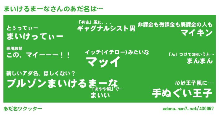 まいけるまーなさんのあだ名を作成しました!