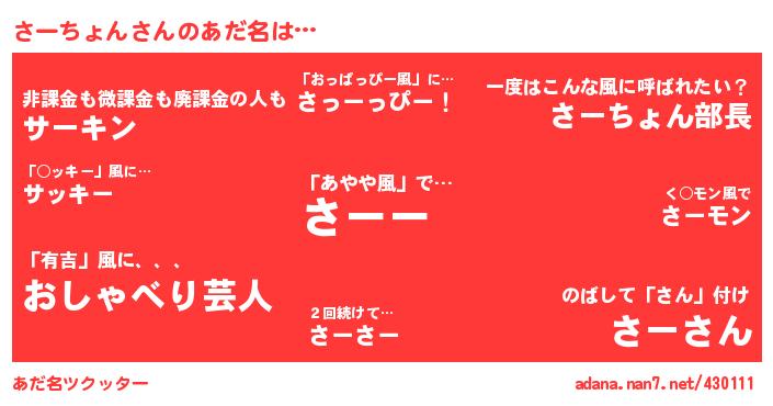 ↓あだ名「さーちょん」にコメントする!