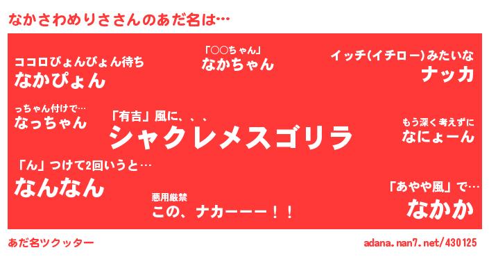 ↓あだ名「なかさわめりさ」にコメントする!