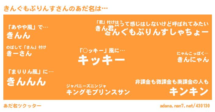 きんぐもぷりんすさんのあだ名を作成しました!