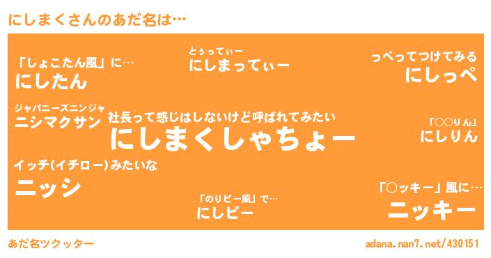 にしまくさんのあだ名を作成しました!