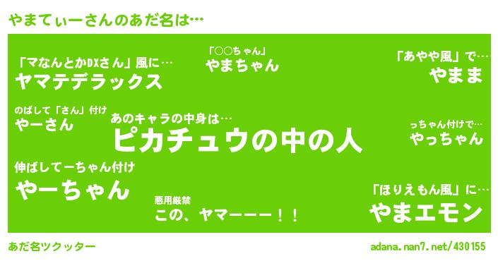 | ポケモン風あだ名 | 『ヒヤマティー』『ヤマゴンZ』『ヤマテダネ』『ゼニヤマ』 |