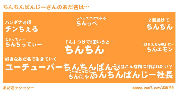 ちんちんぱんじーさんのあだ名を作成しました!