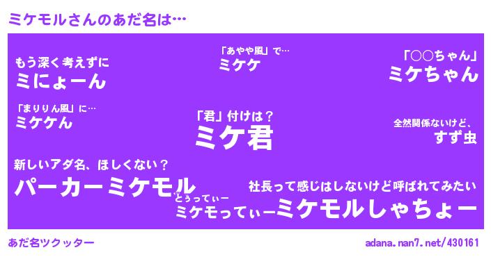 ↓あだ名「ミケモル」にコメントする!