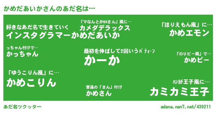 かめだあいかさんのあだ名を作成しました!