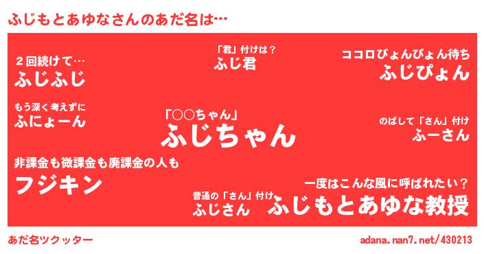 ↓あだ名「ふじもとあゆな」にコメントする!