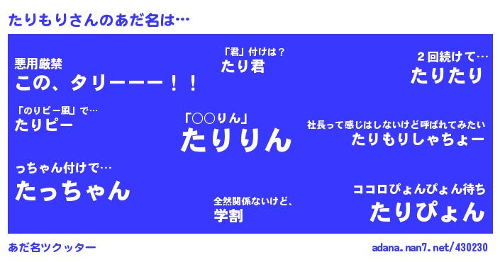 ↓あだ名「たりもり」にコメントする!