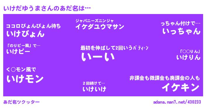 いけだゆうまさんのあだ名を作成しました!