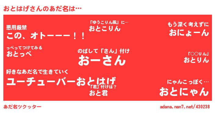 | ヒーロー風カッコイイあだ名 | 『ウルトラおとはげマン』『友情の使者おとはげ』『最強戦士オトハゲ』 |