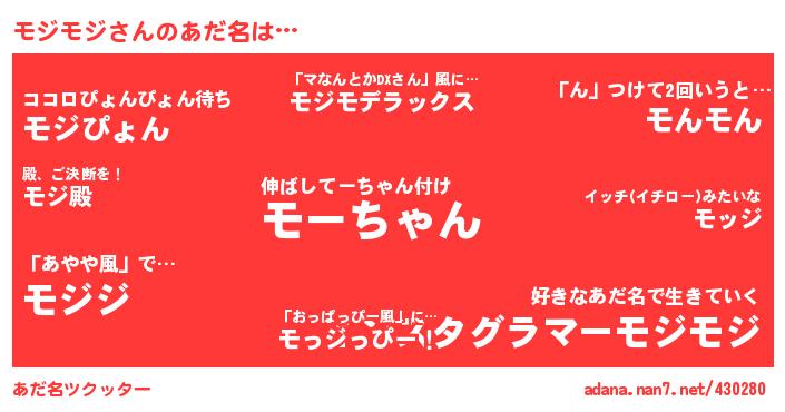 | ポケモン風あだ名 | 『ヒモジモジ』『モジゴンZ』『モックウザ』『モジキング』 |