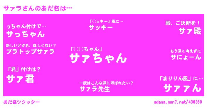 | ヒーロー風カッコイイあだ名 | 『仮面サァダー』『魔戒騎士サァ』『究極戦士サァラ』 |