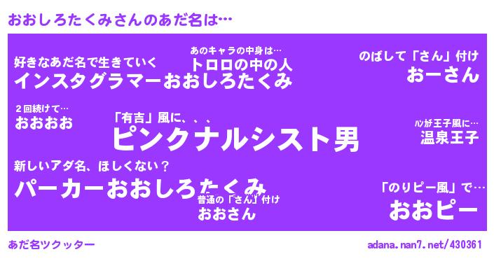 おおしろたくみさんのあだ名を作成しました!