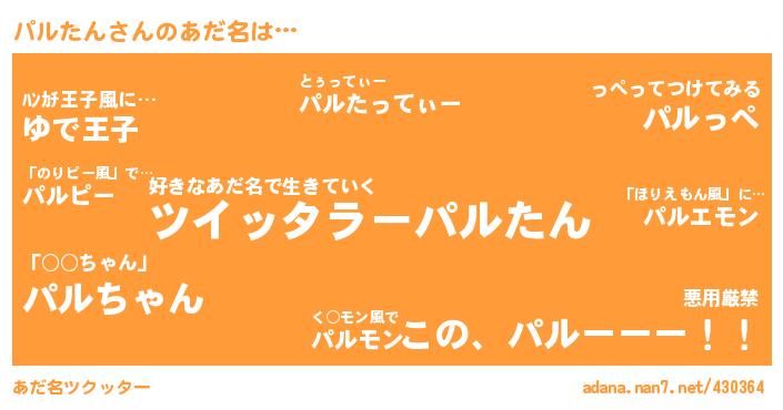 | ヘコむあだ名 | 『パルふぇ~』『豆乳』『パルぷりん』『パルたん(小並感)』 |