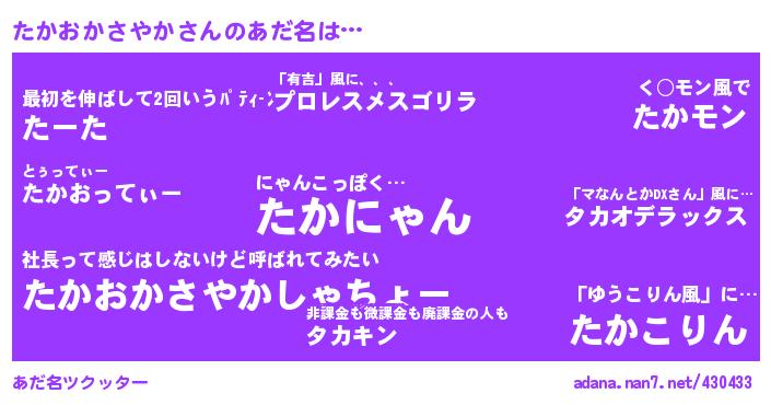 たかおかさやかさんのあだ名を作成しました!