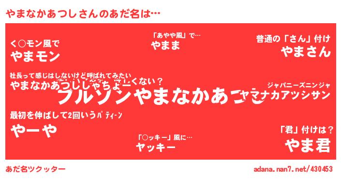 やまなかあつしさんのあだ名を作成しました!