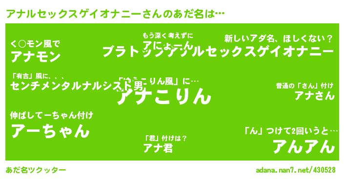 アナルセックスゲイオナニーさんのあだ名を作成しました!