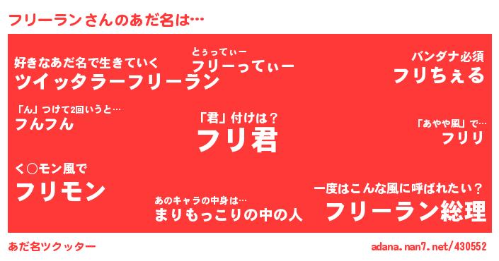 ↓あだ名「フリーラン」にコメントする!
