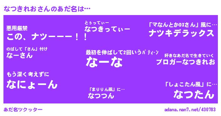 | 意味不明あだ名 | 『住所不定無職なつきれお(40歳)』『とにかく怪しいなつきれお』 |
