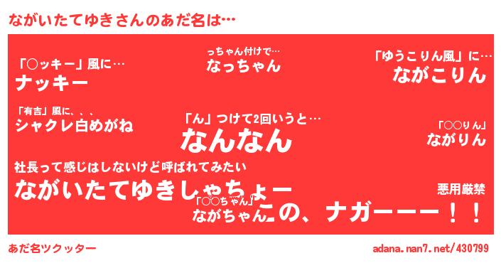 | ヘコむあだ名 | 『ながふぇ~』『豆乳』『ながぷりん』『ながいたてゆき(小並感)』 |