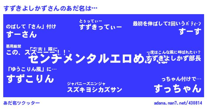 | 意味不明あだ名 | 『眠気覚ましガムすずきよしかず味』『永久保存すずきよしかず』 |