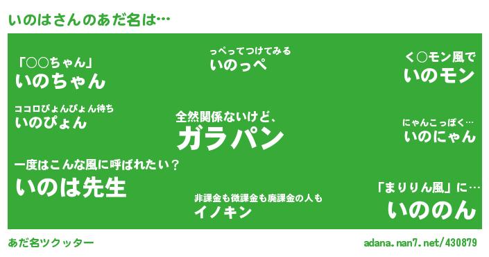 | 意味不明あだ名 | 『永久保存いのは』『住所不定無職いのは(79歳)』『とにかく怪しいいのは』 |