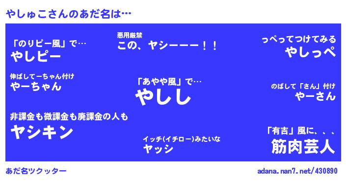 やしゅこさんのあだ名を作成しました!