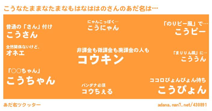 こうなたままなたまなもはなははのさんのあだ名を作成しました!
