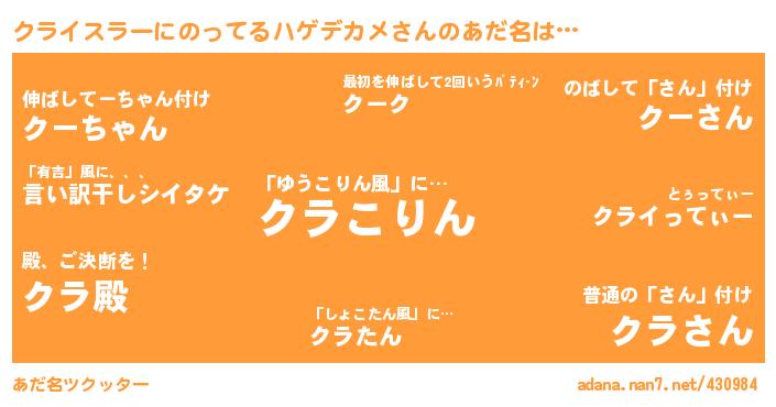 クライスラーにのってるハゲデカメさんのあだ名を作成しました!