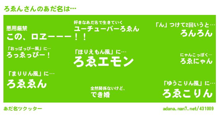 | ヘコむあだ名 | 『ろゑふぇ~』『豆乳』『ろゑぷりん』『ろゑん(小並感)』 |